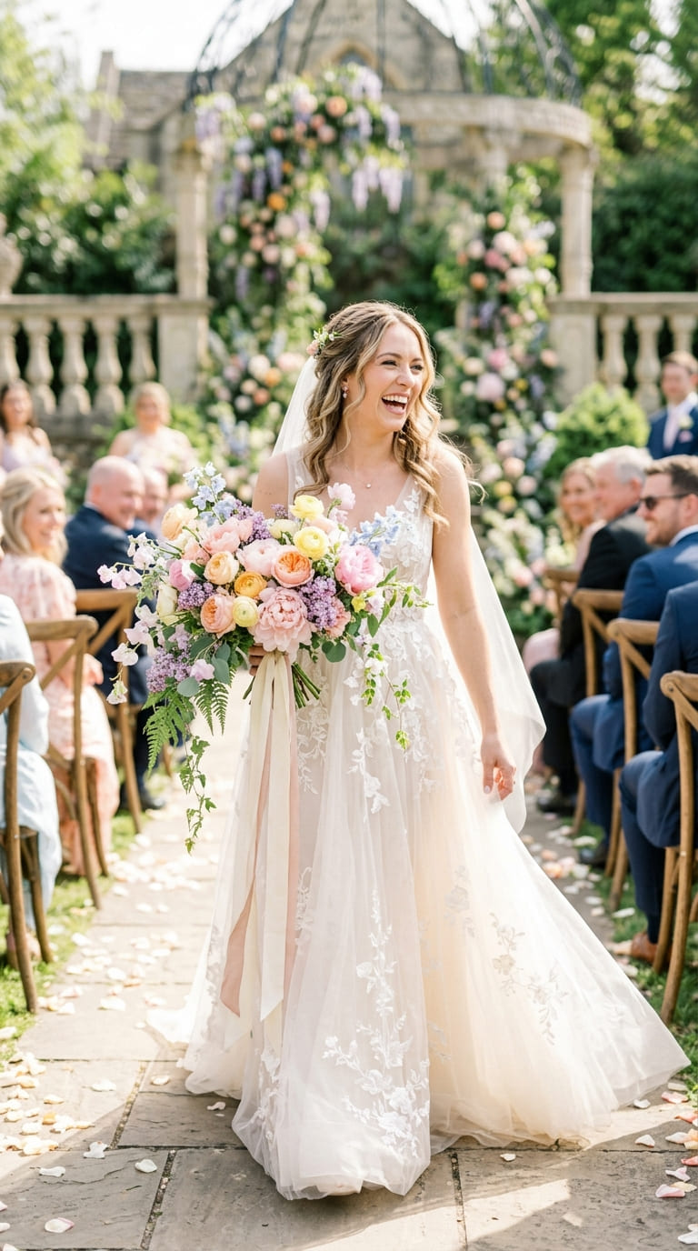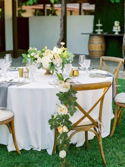Layered textures and airy greenery create a fresh yet timeless atmosphere — effortlessly elegant, naturally graceful, and perfectly suited for outdoor vows or estate venues.