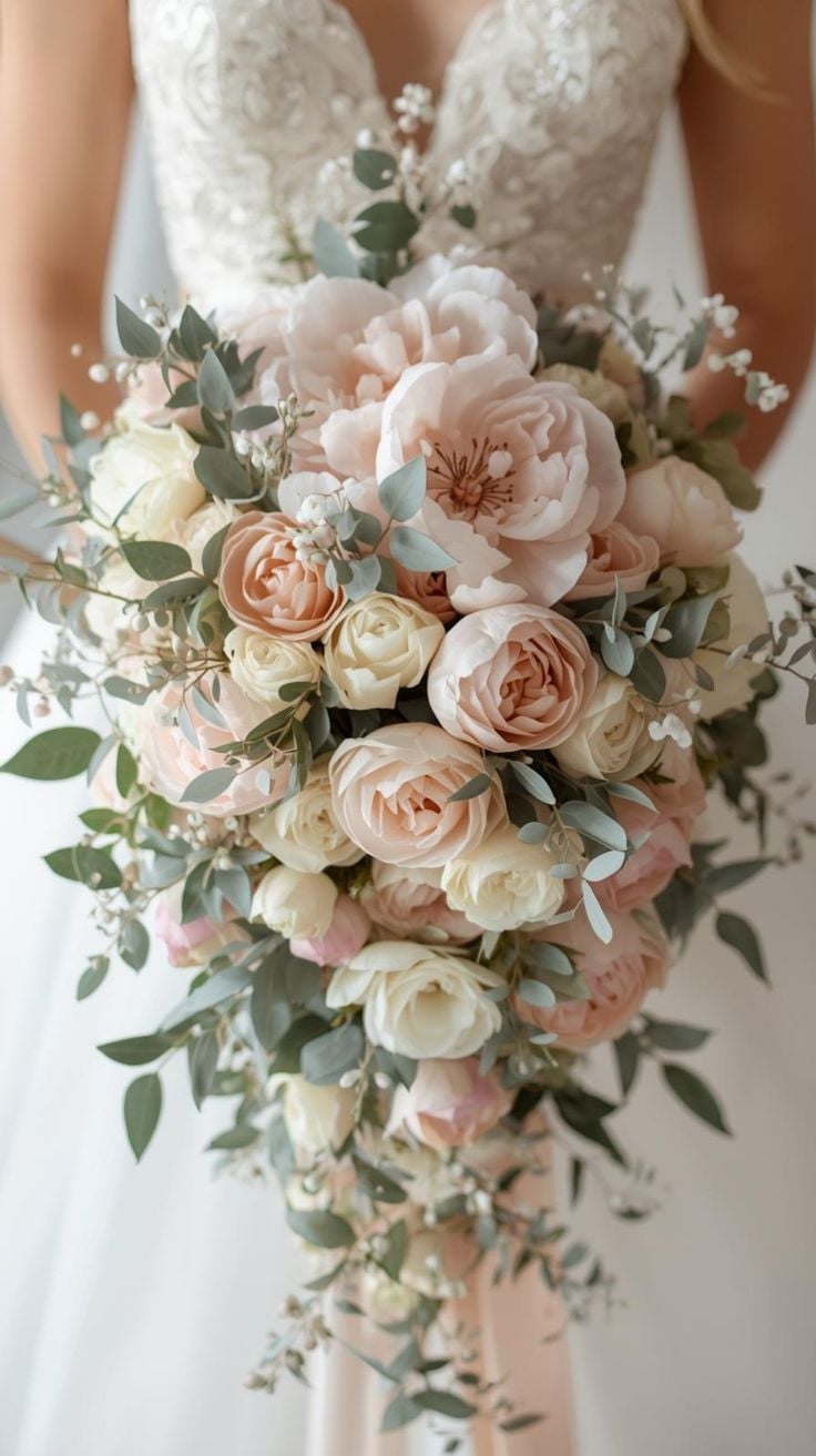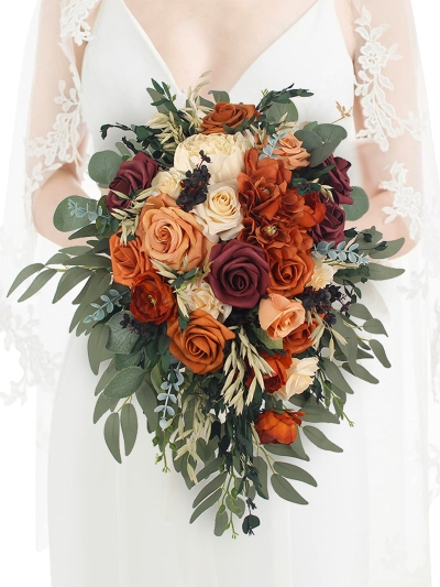 Most brides begin with their wedding palette. Explore cascading silk bouquets thoughtfully designed to complement your chosen colors with elegance and harmony.